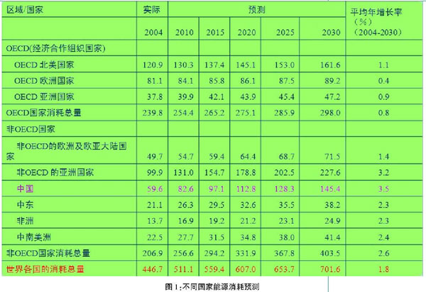 據IEA(國際能源機構,International Energy Agency)預測,至2030年,全球平均能源消耗年增長率為1.8%,而中國為3.5%,高于其他國家尤其是經濟合作組織國家。(見圖1)