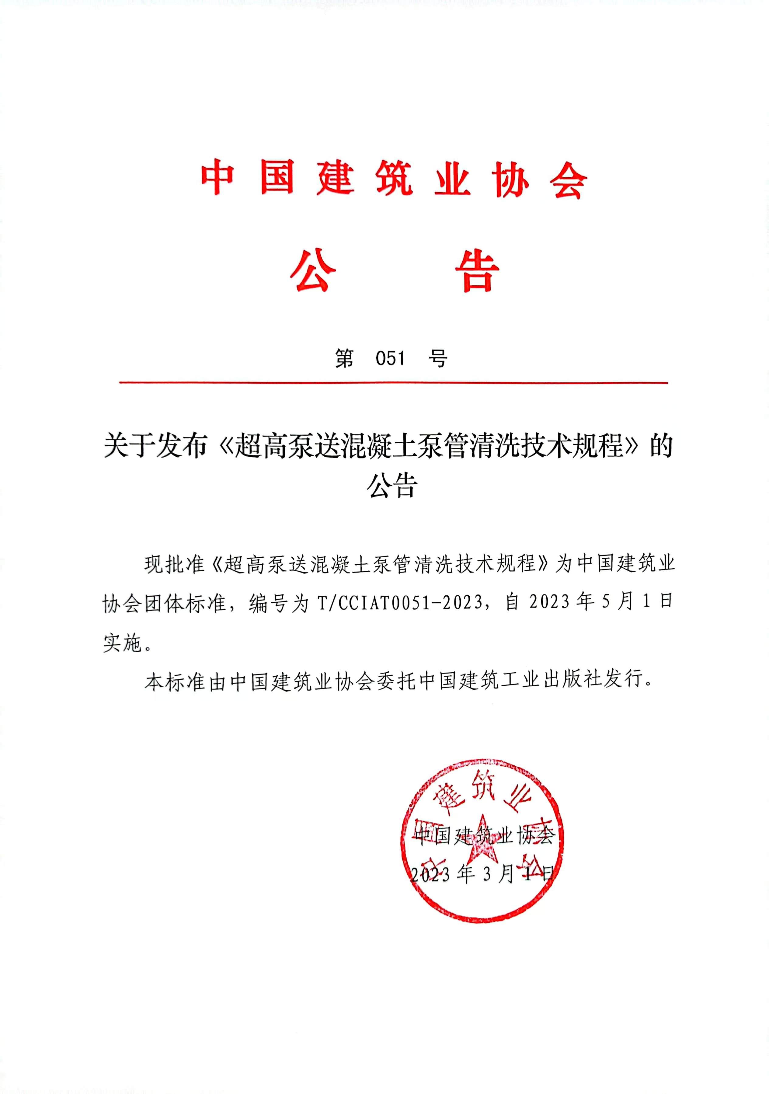 關(guān)于發(fā)布《超高泵送混凝土泵管清洗技術(shù)規(guī)程》的公告