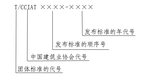 第十七條 團(tuán)體標(biāo)準(zhǔn)的編號由團(tuán)體標(biāo)準(zhǔn)的代號(T/)、中國建筑業(yè)協(xié)會代號(CCIAT)、發(fā)布標(biāo)準(zhǔn)的順序號和發(fā)布標(biāo)準(zhǔn)的年代號組成,并應(yīng)符合下列統(tǒng)一格式: