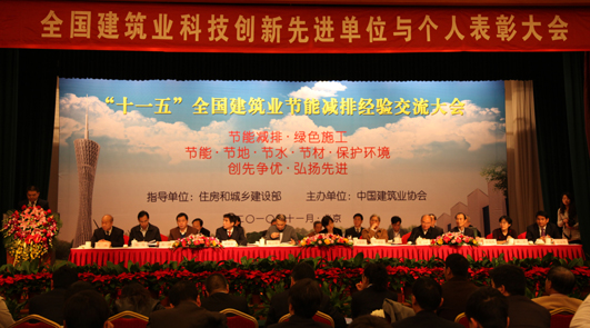 會議在總結交流“十一五”期間建筑業節能減排經驗的同時,還對“十一五”期間為建筑業科技工作做出突出貢獻的先進企業和個人進行了表彰。北京城建集團有限責任公司等140家企業、葉可明等19名專家、馮躍等120名總工程師和李久林等219名個人獲此殊榮。來自全國建設行政主管部門的領導、行業協會負責人、專家學者及企業代表共400多人出席了會議。
