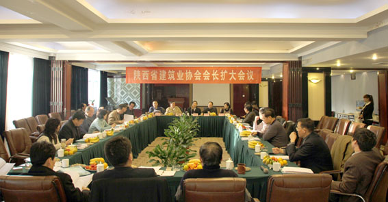 12月29日,陜西省建筑業協會召開會長擴大會議。陜西省造價協會會長彭吉新、勘察設計協會會長萬人選、住建廳建管處處長張蓓、住建廳質量安全處副處長金冀、建協秘書長向書蘭及協會的28名副會長參加了會議。會議由陜西省住建廳副廳長許龍發主持,并作了重要講話。