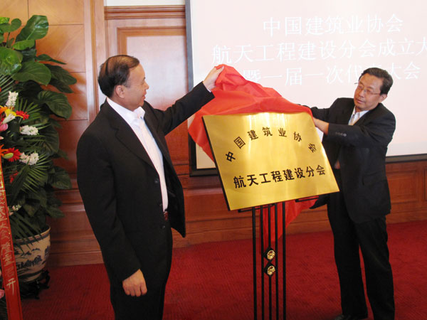 高紅衛(wèi)會長和出席會議的中國建筑業(yè)協(xié)會副秘書長周福民共同為“中國建筑業(yè)協(xié)會航天工程建設(shè)分會”揭牌。