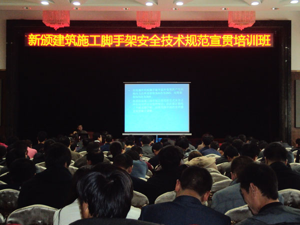 為貫徹落實新頒《建筑施工工具式腳手架安全技術規范》和《建筑施工扣件式鋼管腳手架安全技術規范》,促進企業技術人員全面掌握新標準的主要內容及強制性條文要求,確保施工人員在使用扣件式腳手架和工具式腳手架施工過程中的安全,我會會同甘肅省建筑業聯合會,于11月9-12日在蘭州舉辦了兩期《建筑施工扣件式鋼管腳手架安全技術規范》和《建筑施工工具式腳手架安全技術規范》宣貫培訓班,來自省內各施工企業的1000多名施工技術人員和一線操作人員參加了培訓。
