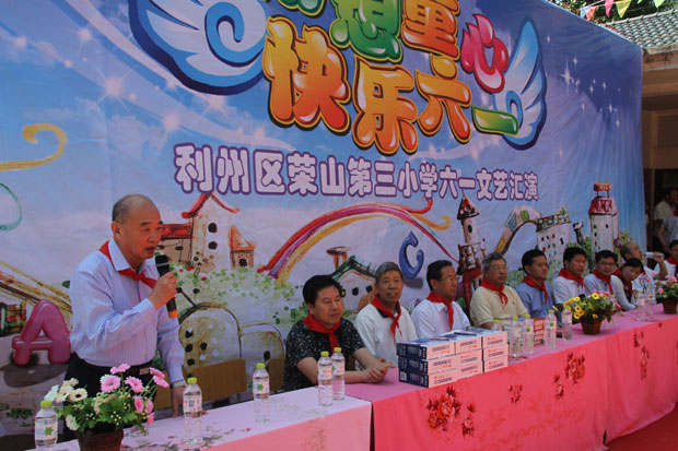 捐贈儀式之后,榮山三小的小演員們表演了精彩的文藝節目。文藝表演結束,各位領導和孩子們集體合影留念。