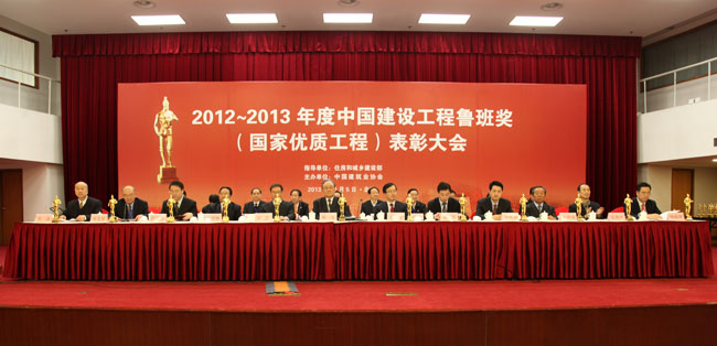 會(huì)上,住房城鄉(xiāng)建設(shè)部工程質(zhì)量安全監(jiān)管司司長常青宣讀了《住房城鄉(xiāng)建設(shè)部關(guān)于2012~2013年度中國建設(shè)工程魯班獎(jiǎng)(國家優(yōu)質(zhì)工程)獲獎(jiǎng)單位的通報(bào)》,中國建筑業(yè)協(xié)會(huì)副會(huì)長兼秘書長吳濤宣讀了中國建筑業(yè)協(xié)會(huì)《關(guān)于頒發(fā)2012~2013年度中國建設(shè)工程魯班獎(jiǎng)(國家優(yōu)質(zhì)工程)的決定》。陜西建工集團(tuán)總公司作為獲獎(jiǎng)工程承建單位的代表作了發(fā)言。會(huì)議還表彰了27項(xiàng)2012~2013年度中國建設(shè)工程魯班獎(jiǎng)(境外工程)。