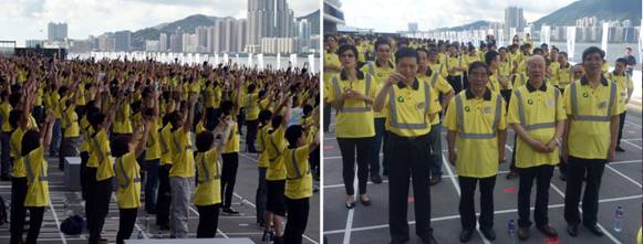 開幕式上,代表團與工友一起進行“八段錦”早操,創下吉尼斯世界紀錄