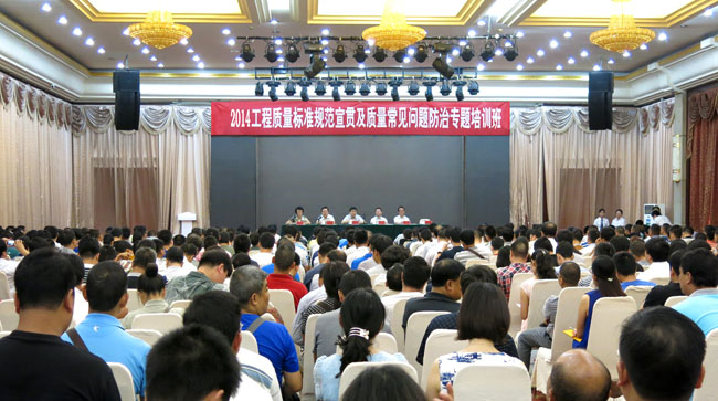 為貫徹落實國務院2011-2020質量發展綱要,促進建筑業從業人員嚴格執行標準規范,有效防治工程質量常見問題,推動工程質量水平不斷提高,受住房城鄉建設部工程質量安全監管司委托,中國建筑業協會于7月30~8月1日在呼和浩特舉辦了2014年第三期工程質量標準規范宣貫及質量常見問題防治專題培訓班。住房和城鄉建設部工程質量安全監管司工程質量監管處范宏柱主任、中國建筑業協會景萬副秘書長、內蒙古住房和城鄉建設廳工程處劉文宇處長、內蒙古建筑業協會李智會長及有關專家出席開班儀式。來自全國各地工程質量監督機構和建筑施工企業的質量、技術、管理人員900余人參加了培訓。