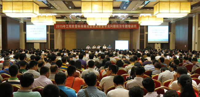 為貫徹落實住房和城鄉建設部工程質量治理兩年行動方案,強化工程建設標準規范的執行力度,有效防治工程質量常見問題,促進工程質量管理水平穩步提高,受住房城鄉建設部工程質量安全監管司委托,中國建筑業協會于5月27~29日在四川成都舉辦了2015年第二期工程質量標準規范宣貫及質量常見問題防治專題培訓班。來自四川、北京、云南、新疆等28個省市工程質量監督站和建筑施工企業的質量、技術、管理人員1000余人參加了培訓。住房城鄉建設部工程質量安全監管司工程質量監管處范宏柱主任、四川省建筑業協會楊乾芳執行會長及有關專家出席,中國建筑業協會景萬副秘書長主持開班儀式。