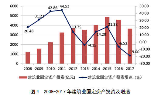(二)建筑業固定資產投資大幅下滑  總產值增速連續兩年增長