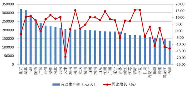 圖6 2018年上半年各地區按建筑業總產值計算的勞動生產率及增速