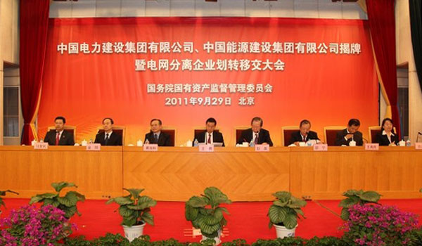 9月29日,中國電力建設(shè)集團有限公司在京正式掛牌成立。揭牌儀式暨電網(wǎng)分離單位劃轉(zhuǎn)移交大會在國資委舉行,同時揭牌的還有中國能源建設(shè)集團有限公司。這標(biāo)志著歷時多年的電網(wǎng)主輔分離改革重組取得重大進展,標(biāo)志著中央電力企業(yè)布局結(jié)構(gòu)調(diào)整邁出重要步伐。國資委主任、黨委書記王勇、國家發(fā)改委副主任彭森出席會議并講話,電監(jiān)會、財政部、國家能源局、工商總局等有關(guān)部委負責(zé)同志出席,國資委副主任邵寧宣讀了國務(wù)院有關(guān)批復(fù),國資委副主任金陽宣布了有關(guān)人事任命。中國電力建設(shè)集團有限公司董事長范集湘代表集團作了發(fā)言。