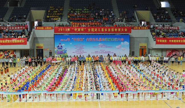 此次表演大會由中國關心下一代工作委員會、中國宋慶齡基金會、中國體操協會等聯合主辦,由中南控股集團有限公司、中南建設產業集團和中國關心下一代工作委員會幼兒基本體操促進會承辦。來自全國14個省、市、自治區及各行業體協的46個基層幼兒園代表隊,以及特邀嘉賓泰國代表隊的500余名小朋友參加了此次表演,大會共分自編幼兒基本體操、自編幼兒輕器械基本體操和蹦床三組。 (中南建設產業集團 王倫成)