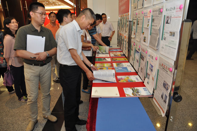 會(huì)前,與會(huì)人員參觀了優(yōu)秀報(bào)刊的展示。