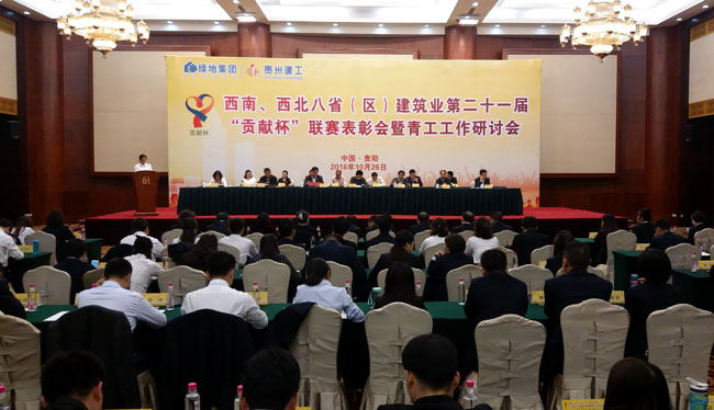 10月26日,由貴州建工集團承辦的西南、西北八省(區)建筑業第二十一屆“貢獻杯”聯賽表彰會暨青工工作研討會在貴州隆重召開。貴州建工集團黨委書記、董事長陳世華,共青團貴州省委副書記徐錫廣,貴州省國資委黨委委員、副主任陳健等領導出席表彰大會。來自西南、西北八省(區)建工集團的166名青年代表參加會議。