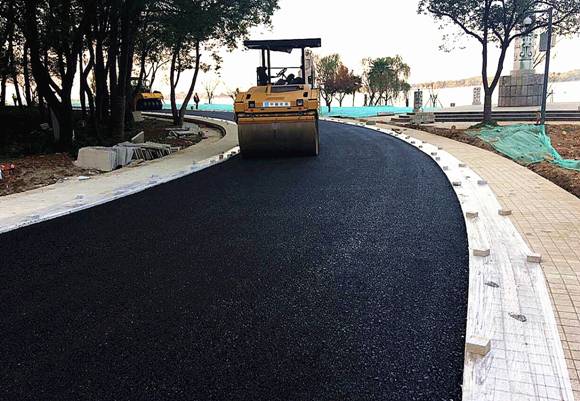 中建三局施工的武漢東湖綠道工程開始攤鋪瀝青