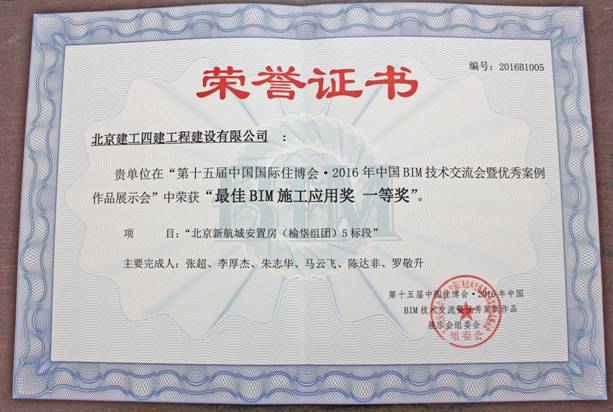 近日,北京新機(jī)場安置房工程各施工方應(yīng)建設(shè)單位要求參加了“第十五屆中國住博會2016年中國BIM技術(shù)交流暨優(yōu)秀案例作品展示會大賽”,此次大賽分設(shè)計、施工、運(yùn)維、綜合、專項、教育、大學(xué)生、個人貢獻(xiàn)組。北京建工四建新機(jī)場安置房項目部的參賽作品在全國數(shù)百家企業(yè)的932份參賽作品中脫穎而出,斬獲施工組一等獎,據(jù)悉這是四建公司繼榮獲“2014年度中國建筑業(yè)建筑信息模型(BIM)邀請賽”二等獎后再次獲全國大獎。