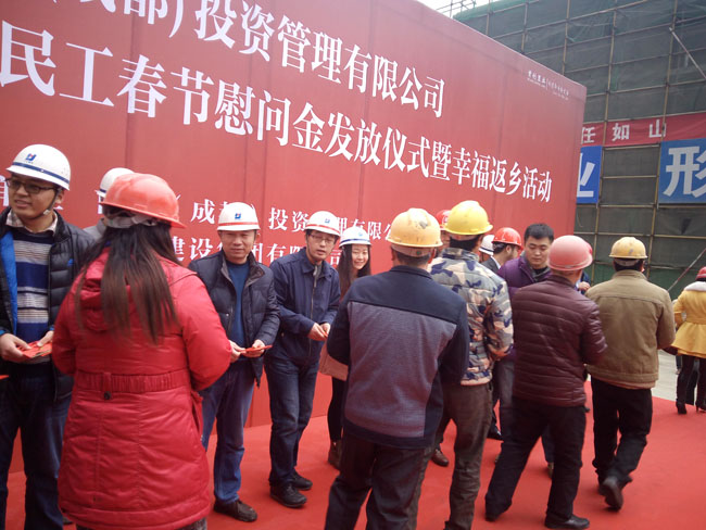 河北建設(shè)集團(tuán)成都分公司、首創(chuàng)(成都)投資管理有限公司等相關(guān)負(fù)責(zé)同志出席歡送儀式,共同表達(dá)對農(nóng)民工兄弟的感謝之情。他們親手為農(nóng)民工兄弟們包好過年的紅包,祝福他們新的一年紅紅火火,財(cái)源廣進(jìn)。該集團(tuán)首創(chuàng)嬌子一號項(xiàng)目部也不甘落后,出資租用了數(shù)輛大巴車護(hù)送農(nóng)民工兄弟安全返鄉(xiāng)。