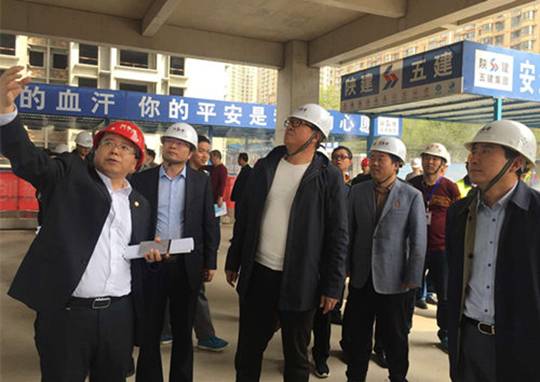 4月14日下午,由西安市城鄉(xiāng)建設(shè)委員會主辦,西安浐灞生態(tài)管理委員會與陜建五建集團(tuán)承辦的“鐵腕治霾 保衛(wèi)藍(lán)天”西安市2017年建設(shè)工地?fù)P塵治理工作現(xiàn)場會在集團(tuán)公司浐灞•新都匯項目部隆重召開。西安市城鄉(xiāng)建設(shè)委員會副主任蓋文峰,浐灞管委會副主任樊偉,陜建集團(tuán)副總經(jīng)理張文琪,陜建五建集團(tuán)總經(jīng)理張曉普出席了此次會議,會議由市建筑業(yè)處處長張小波主持。