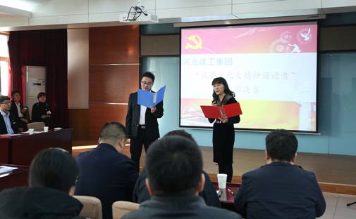 比賽間隙,集團公司張秋英、張占飛飽含深情地為大家朗誦了詩歌《這個時刻我要歌唱》,省四建公司李寧朗誦了毛澤東詩詞《蝶戀花•答李淑一》,省二建公司李智朗誦了《歌頌偉大祖國,唱響黨的贊歌》,省安裝公司何瑜、尉益會朗誦了《你好十九大,加油中國》,一度將現場氣氛推向高潮。此外,為了幫助大家學深學透、融會貫通,主持人現場組織了黨的十九大及黨章知識有獎競答,大家爭先恐后、踴躍答題。