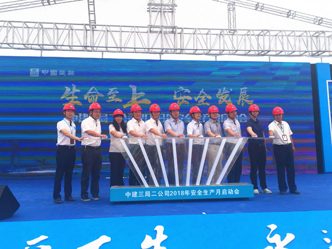 最后,參會主要領導共同按下啟動器,宣布中建三局二公司2018年安全生產月啟動。