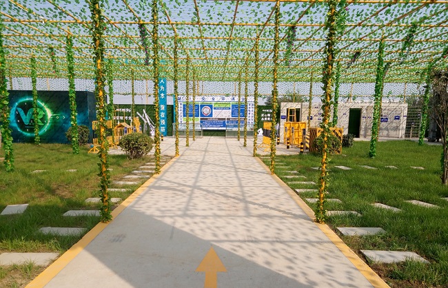 項目在前期的策劃上顛覆人們對傳統工地的認知,以“綠色環保,建造花園式項目”為主題,將項目的邊邊角角進行綠化,在不滿足生長條件的地方配合進行綠色裝飾,給廣大工友及同事提供一個舒適的工作環境,讓人體驗一種舒適花園的場景,不但提高了工作效率,也解決了北方施工項目因揚塵治理因素制約的問題。
