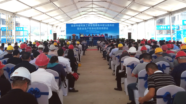 近日,吉安市建筑施工安全隱患集中整治宣傳日暨安全生產標準化現場觀摩會,在中建二局二公司吉安廬陵府項目順利舉辦。市住建局黨委委員、副局長范川,市住建局施工管理科科長劉振華,市建筑業安全生產監督管理站站長林保衛,市施工管理站站長周世安,市應急管理局負責人童正旺,中建二局二公司(華東)副總經理藏良,以及市相關單位各級領導和吉安市各建設單位負責人、總監理工程師、項目經理、專職安全員等近400人參加。