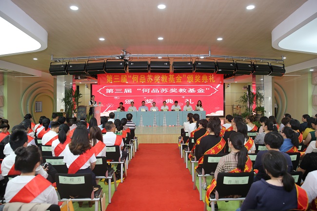 10月10日上午,第三屆“何品蘇獎教基金”頒獎典禮在東陽市實(shí)驗(yàn)幼兒園藝海劇院隆重舉行。東陽市委常委、宣傳部長蔣令樹,東陽市副市長陳巧錦,市教育局局長顧在響,以及東陽市外國語學(xué)校校長蔣曉東、市外國語小學(xué)校長盧雁紅、市實(shí)驗(yàn)幼兒園園長沈群英,歌山控股集團(tuán)董事長兼總裁何向全,浙江歌山置業(yè)有限公司董事長、何品蘇獎教基金會名譽(yù)理事長何向健出席典禮并為獲獎教師頒獎。