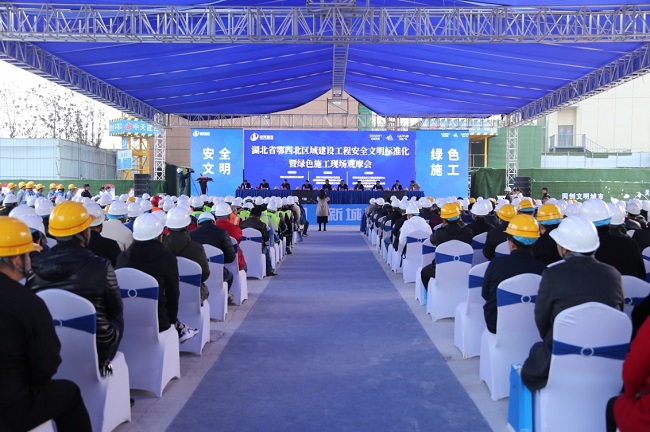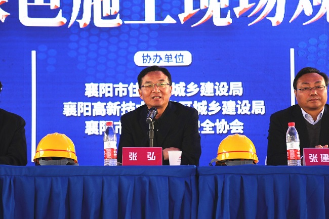 湖北省住建廳黨組副書記、副廳長張弘,湖北省質(zhì)安總站副站長楊碧華,襄陽市副市長張建友、中建三局安監(jiān)部執(zhí)行總經(jīng)理倪秋鴻,中建三局二公司副總經(jīng)理鄭承紅,安全總監(jiān)方發(fā)齊,荊州市、十堰市、襄陽市、隨州市、荊門市等鄂西北地區(qū)市住建系統(tǒng)負責人及建設(shè)工程代表等500余人參加了此次觀摩會。