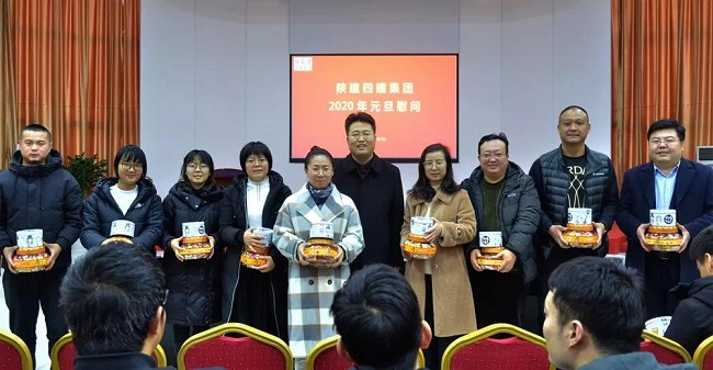 四建集團工會副主席、女工委主任成曉娟宣讀了《陜建四建集團2020年元旦賀詞》,與會領導向參加慰問活動的職工逐一送上糖果、瓜子等新年慰問品。