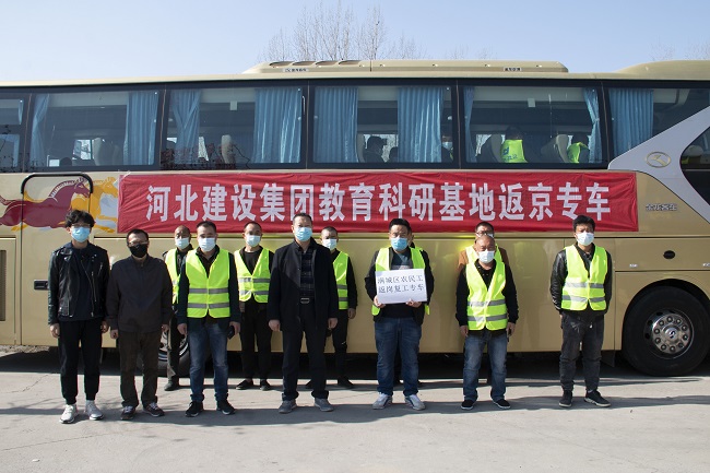 3月22日,在北京市大興區(qū)人社局、住建委、大興機(jī)場臨空經(jīng)濟(jì)區(qū)管委會的支持下,河北建設(shè)集團(tuán)北京新機(jī)場教育科研基地項(xiàng)目以租賃大巴車的方式,“點(diǎn)對點(diǎn)”幫助易縣、徐水、望都等近100名建筑工人返京復(fù)工。