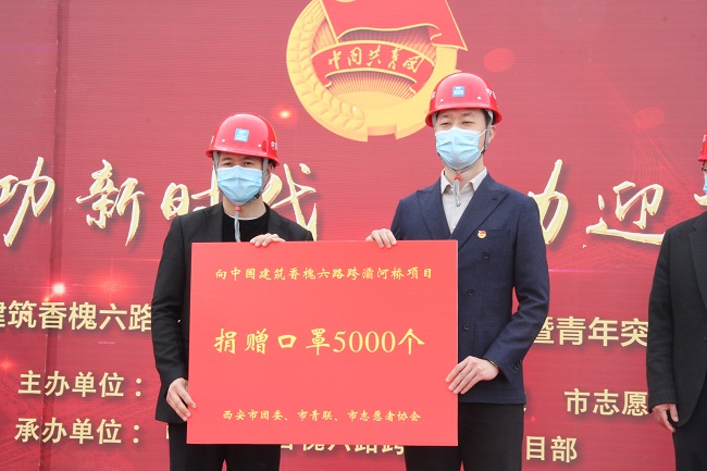 期間,團(tuán)市委、市青聯(lián)、市志愿者協(xié)會(huì)等領(lǐng)導(dǎo)還深入項(xiàng)目現(xiàn)場(chǎng)視察工程建設(shè)情況,關(guān)心了解項(xiàng)目青工工作生活情況,并為堅(jiān)守一線的青工捐贈(zèng)了5000只防疫口罩。