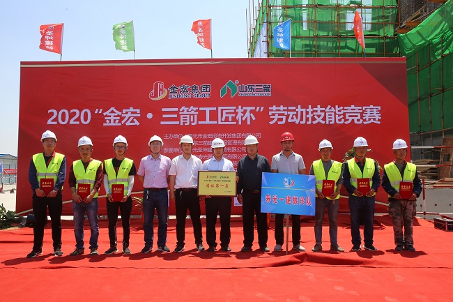 5月22日上午,壽光建設(shè)集團(tuán)山東壽光第一建筑有限公司參加了“金宏•三箭工匠杯”勞動(dòng)技能競賽,由6名熟練技術(shù)工人組成“壽光一建振興隊(duì)”,他們勇挑重?fù)?dān),敢于拼搏,運(yùn)用嫻熟的技能,發(fā)揮豐富的臨戰(zhàn)經(jīng)驗(yàn),在30多名參賽強(qiáng)手面前,展現(xiàn)了壽光一建公司的工匠風(fēng)采,賽出了精神,賽出了水平,在架子工、砌筑工和電工三個(gè)比賽項(xiàng)目比拼中均取得優(yōu)異成績,最終獲得綜合評(píng)分團(tuán)體第一名及腳手架組金獎(jiǎng)、配電箱接線組銀獎(jiǎng)、墻體砌筑組銅獎(jiǎng)的好成績。