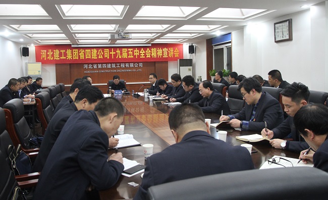 室外寒氣襲人,室內暖意融融。12月1日下午,河北省四建公司三樓會議室座無虛席,10個分會場的聽眾聚精會神。河北建工集團黨委書記、董事長李云霄正在向與會者作黨的十九屆五中全會精神專題宣講。公司黨委書記、董事長董富強主持宣講會。