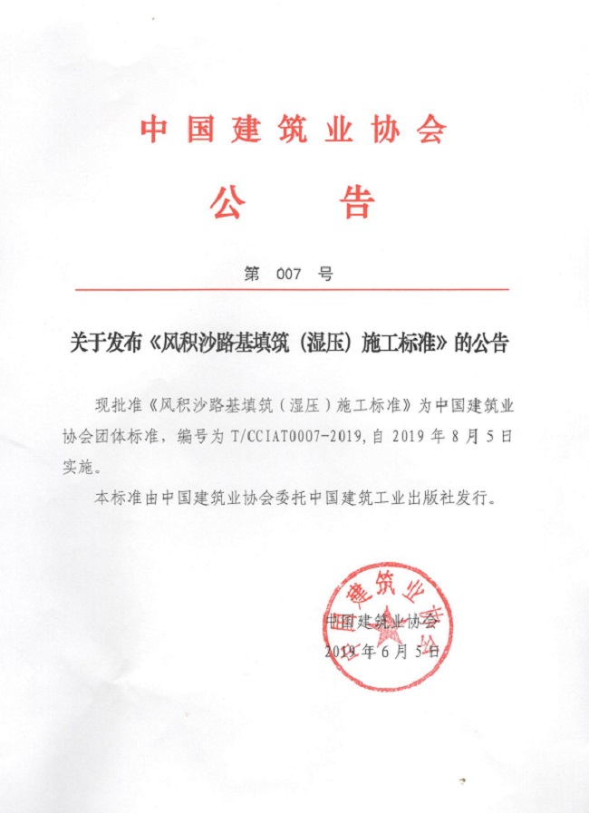 關于發布《風積沙路基填筑(濕壓)施工標準》的公告