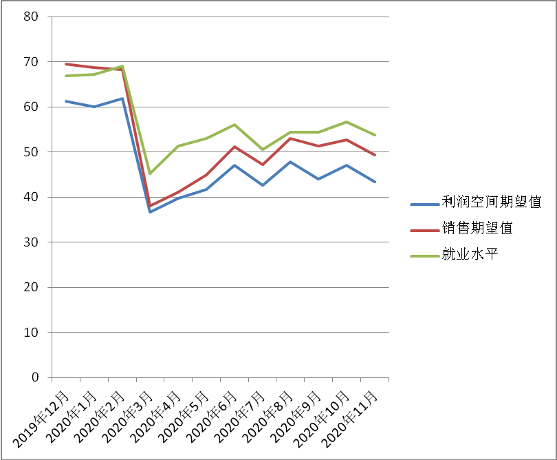 美國建造師和承包商聯合會每月就建筑銷售預期、利潤空間預期和人員到位預期發布信心指數報告。分值50以上表明增長。