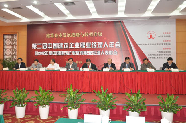 由中國建筑業(yè)協(xié)會建筑企業(yè)經(jīng)營和勞務(wù)管理分會主辦的第二屆中國建筑企業(yè)職業(yè)經(jīng)理人年會12月6日在廣西北海隆重召開。原建設(shè)部黨組成員、紀(jì)檢組長姚兵,住房和城鄉(xiāng)建設(shè)部建筑市場監(jiān)管司施工監(jiān)管處處長逄宗展出席會議并作專題演講。中國建筑業(yè)協(xié)會副會長徐義屏、廣西住房城鄉(xiāng)建設(shè)廳副廳長唐標(biāo)文分別致辭。開幕式由中國建筑業(yè)協(xié)會建筑企業(yè)經(jīng)營和勞務(wù)管理分會秘書長邢作國主持。
