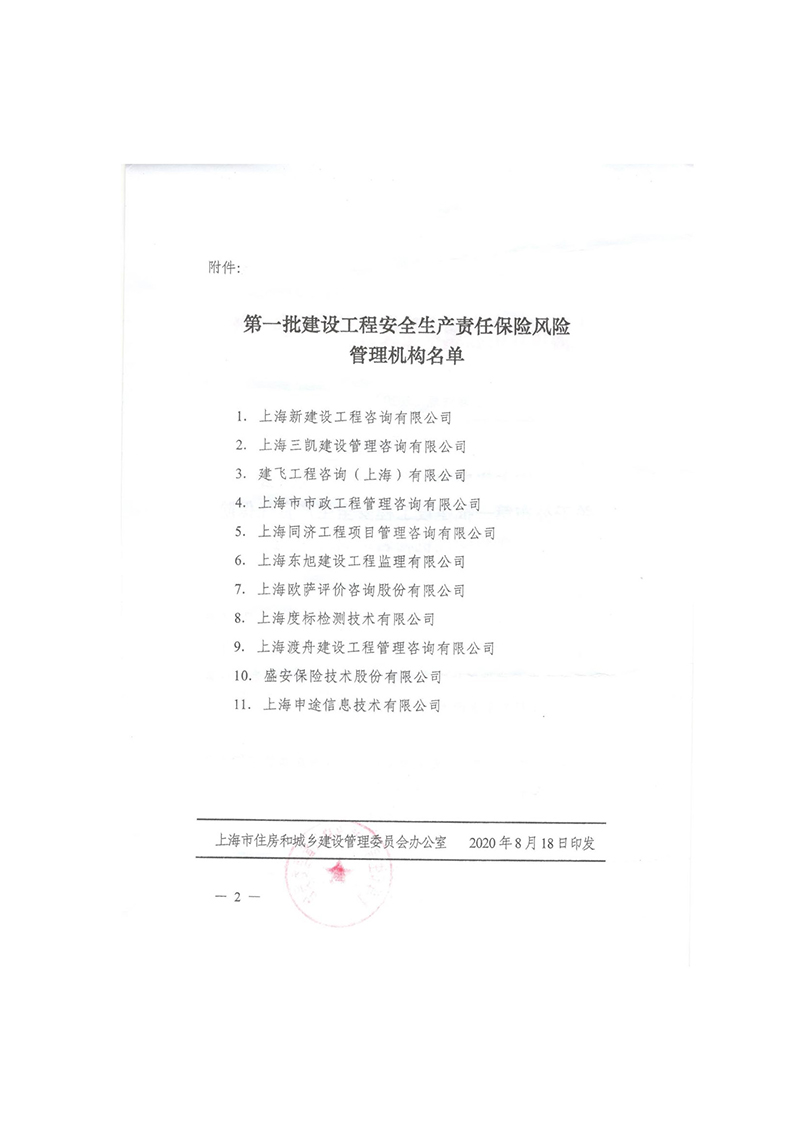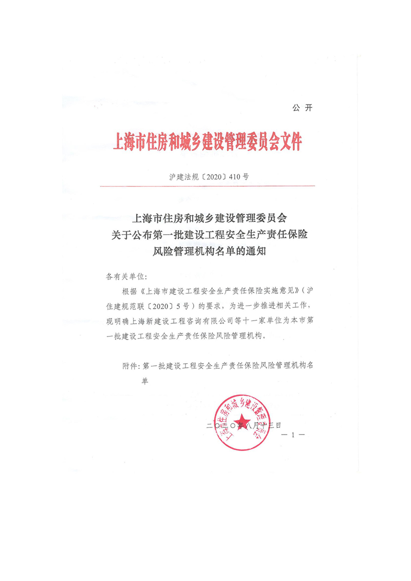 上海市住房和城鄉建設管理委員會關于公布第一批建設工程安全生產責任保險風險管理機構名單的通知